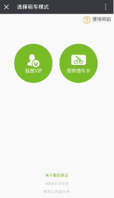 綁定完成之后就可以選擇租車模式界面下【我有借車卡】掃碼借車了,