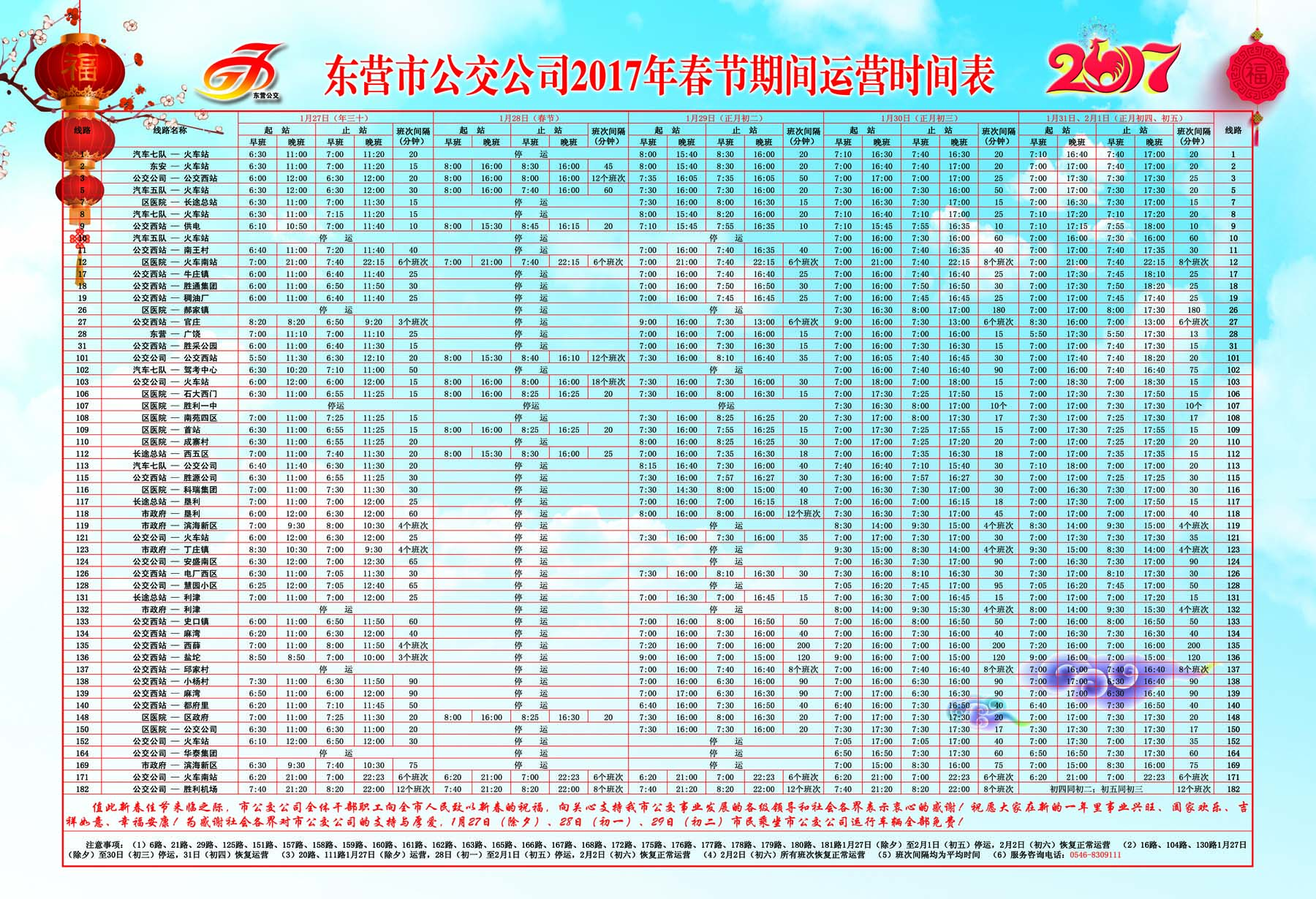 值此新春佳節(jié)來臨之際,市公交公司全體干部職工向全市人民致以新春的祝福,向關(guān)心支持我市公交事業(yè)發(fā)展的各級領(lǐng)導(dǎo)和社會各界表示衷心的感謝!祝愿大家在新的一年里事業(yè)興旺、闔家歡樂、吉祥如意、幸福安康!為感謝社會各界對市公交公司的支持與厚愛,1月27日(除夕)、28日(年初一)、29(初二)市民乘坐公交公司運(yùn)營車輛全部免費(fèi)!