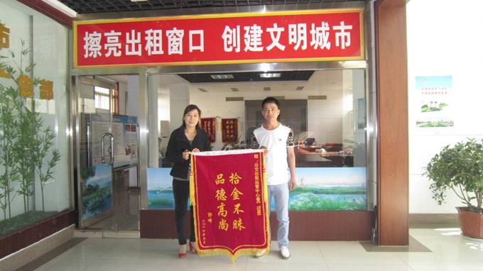 5月1日晚,家住史口鎮(zhèn)的郭峰先生在西城淄博路就餐后搭乘魯ET1980號出租車返回東城東三路附近下車,下車時(shí)不慎將隨身攜帶手提袋里的手機(jī)、銀行卡等證件及其他物品遺失在出租車上,因下車未取出租車發(fā)票,一時(shí)無法聯(lián)系司機(jī)。次日出租車駕駛員李懷芬將撿到的手提袋主動交給運(yùn)營中心,后經(jīng)運(yùn)營中心工作人員與乘客取得聯(lián)系,將出租車司機(jī)李懷芬撿到的手提袋物歸原主。事后乘客郭峰送來一面錦旗對出租車駕駛員李懷芬表示感謝。