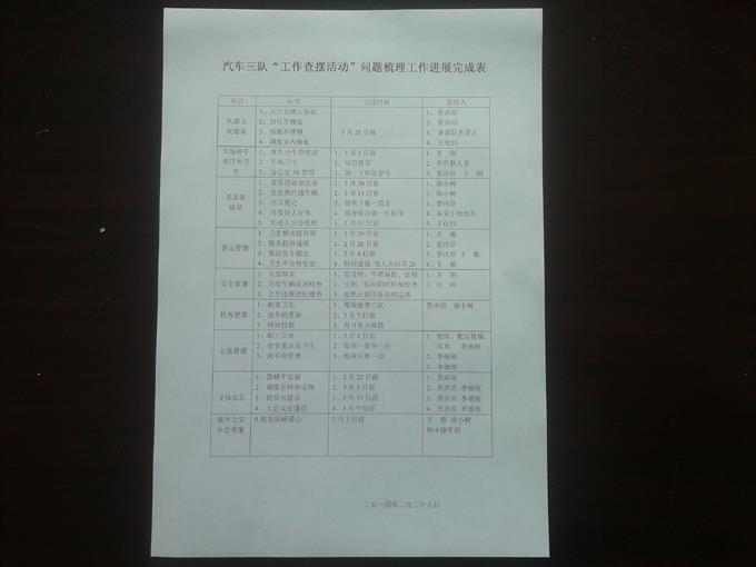 會上,車隊領(lǐng)導(dǎo)首先拋磚引玉,查擺梳理出車隊現(xiàn)行管理中存在的十個方面的問題,逐條進行了深入講解和剖析。隨后,車隊每名管理干部和管理人員也都對照自己的工作職責(zé),從工作履職、工作態(tài)度、工作作風(fēng)、工作效率四個方面進行了反思和查擺,客觀的分析總結(jié)了當(dāng)前工作中的不足和存在的問題,提出自己整改的具體工作方向、整改步驟、整改的完成期限。