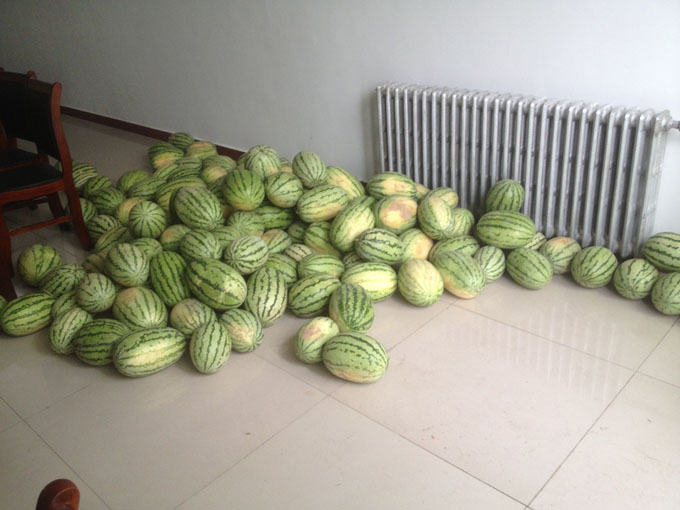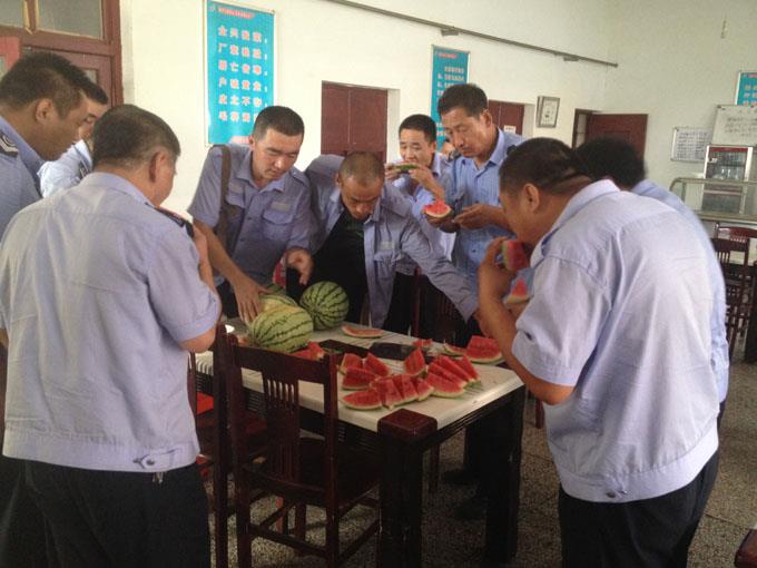 7月13日,三隊(duì)駕駛員楊海衛(wèi)自己買來2000斤西瓜,給在酷暑中堅(jiān)守工作的廣大工友送來絲絲清涼。