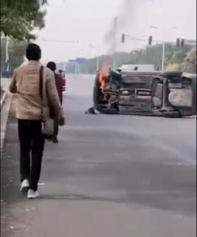 今天中午十二點(diǎn)半左右,在青島路上,一輛小轎車不知什么原因發(fā)生了側(cè)翻起火,火焰不斷向上躥,冒著濃濃黑煙。更令人揪心的是,當(dāng)時(shí)車內(nèi)還有三個(gè)人(據(jù)說是一家三口)被困車中沒能出來,隨時(shí)都有被大火吞噬的危險(xiǎn)。