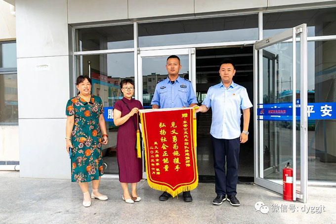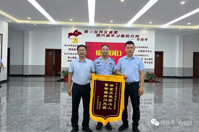 失主家屬杜先生趕做一面“拾金不昧好心人,雷鋒精神閃光輝”的錦旗,驅車來到車隊表達謝意。