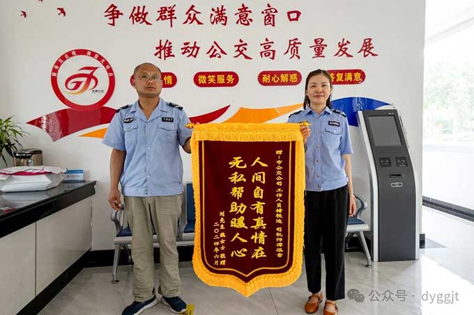 6月27日,市民劉先生和魏女士將一面印有“人間自有真情在 無(wú)私幫助暖人心”的錦旗,送到市公交集團(tuán)客服中心,以感謝市公交集團(tuán)客服中心與汽車一隊(duì)接力幫助尋找孩子的暖心事跡。