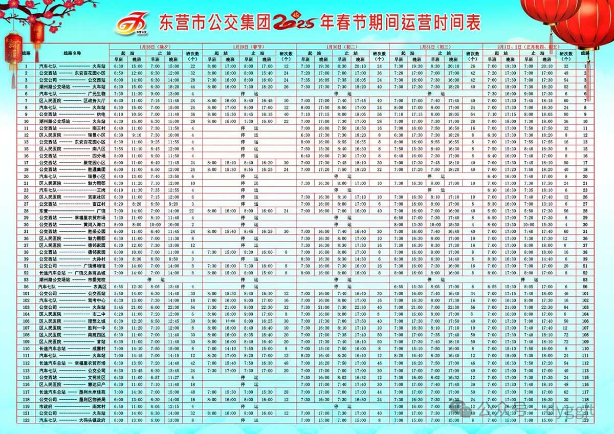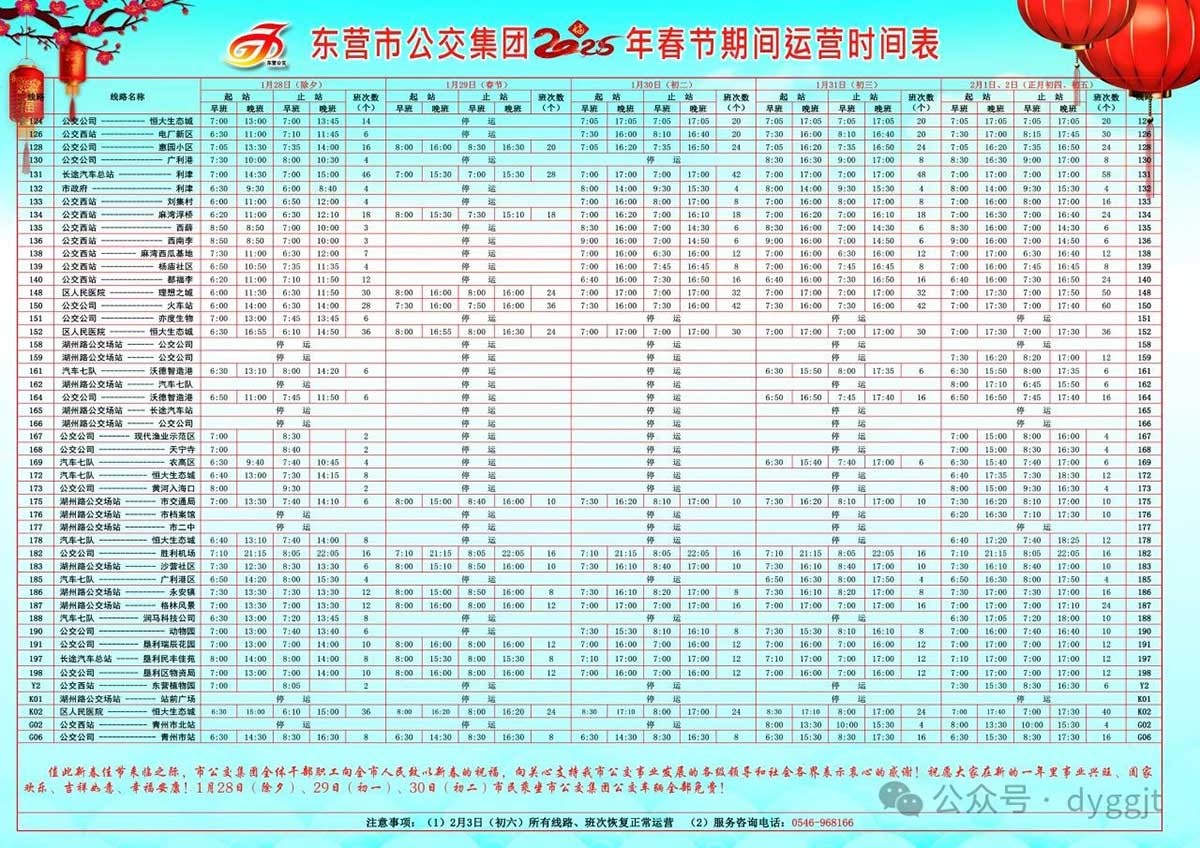 在這個新春佳節(jié)的美好時刻,東營市公交集團全體干部職工向全市人民致以最誠摯的新年祝福,并向所有關心、支持我市公交事業(yè)發(fā)展的各級領導和社會各界人士表示衷心的感謝!愿大家在新的一年里,事業(yè)蒸蒸日上、家庭幸福美滿、吉祥如意、平安喜樂!為了回饋社會對東營市公交集團的深情厚誼與支持,春節(jié)期間,即1月28日(除夕)、1月29日(初一)、1月30日(初二),市民乘坐東營市公交集團所屬公交線路(高鐵快線除外)均可享受免費乘車服務!