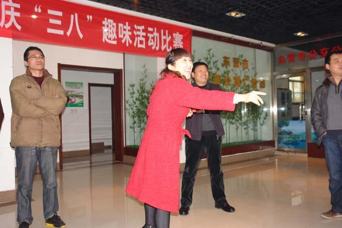 為慶祝“三八”國際勞動婦女節(jié),豐富和活躍職工文化生活,3月5日下午,市公交公司廣告部舉行了慶“三八”趣味活動比賽。比賽設(shè)有搶凳子、夾玻璃球、吹氣球、投擲飛鏢四個項目。整個活動現(xiàn)場氣氛熱烈,快樂而有趣,所有人員興致勃勃參與到各個趣味游戲當(dāng)中。大家各施其技,力爭取勝,過關(guān)的喜悅,獲勝的歡樂一次次把比賽推向高潮。