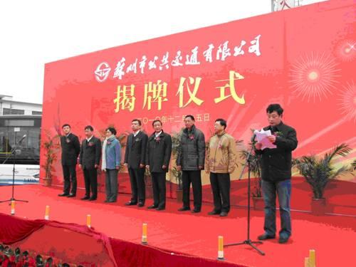 2010年12月15日,蘇州市公共交通有限公司舉行了隆重的揭牌儀式。市委副書記、市長閻立、副市長朱建勝、市政協(xié)副主席葛維玲等領(lǐng)導(dǎo)出席活動(dòng),現(xiàn)場(chǎng)的300多名公交員工共同見證這一歷史性時(shí)刻的到來。