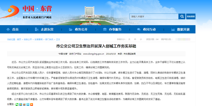 2014年9月19日東營市政府網站報道