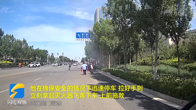 在菏澤路和西三路路口附近,看見(jiàn)前方有濃煙冒出,感覺(jué)就是著火了,把車(chē)停到路邊,拉好手剎,提著滅火器下去,幾分鐘就把火滅了。確認(rèn)火勢(shì)得到控制后,李斌離開(kāi)了現(xiàn)場(chǎng),迅速返回到了他的工作崗位上。事后回憶起此事,他也表示這是他應(yīng)該做的。